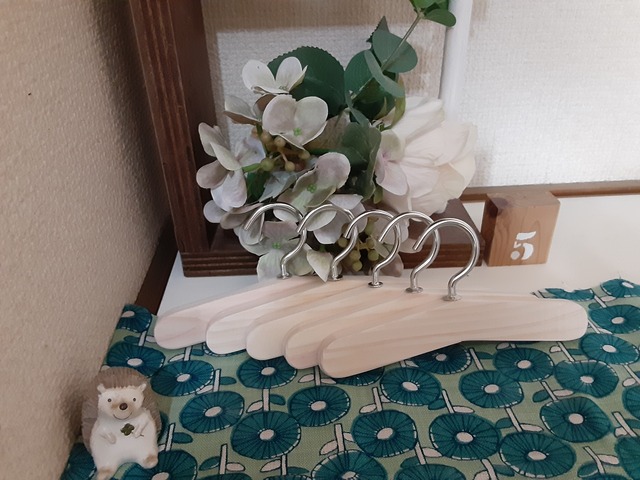 ひのきスリムハンガー通常タイプ 無塗装 5本送料込み (クリックポストでの発送) 重さは1本約30g前後でとっても軽く ひのきなのでしっかりとして長くお使い頂けます。 ひのきに含まれる「フィトンチッド」という成分には、強い消臭・抗菌作用があります。 ペットの服等に付きがちな独特のニオイを、天然の香りで和らげてくれます。 雑菌の繁殖を抑える効果があるため、デリケートな肌を持つペットの服を保管するのに最適です。 ひのきは古くからタンスの材料に使われるほど、防虫効果に優れています。 ハンガーの厚み1㎝です。 ハンガーの厚みはあまり厚すぎるとお洋服をかけるスペースを 取ってしまう あまり薄すぎるとお洋服を綺麗にかけずらいなどがございます。 厚さ1㎝は厚すぎず薄すぎず丁度良いサイズになっております。 直径2㎝のポールにかけられるように製作しております。 材質 ひのき 厚み 1㎝ ハンガーの横幅12.14.16.18.20㎝の中からサイズを選ぶことが出来ます。 サイズの組み合わせ出来ます。 組み合わせご希望の場合は選択の組み合わせ希望をお選びください。 こちらから確認のご連絡を致します。
