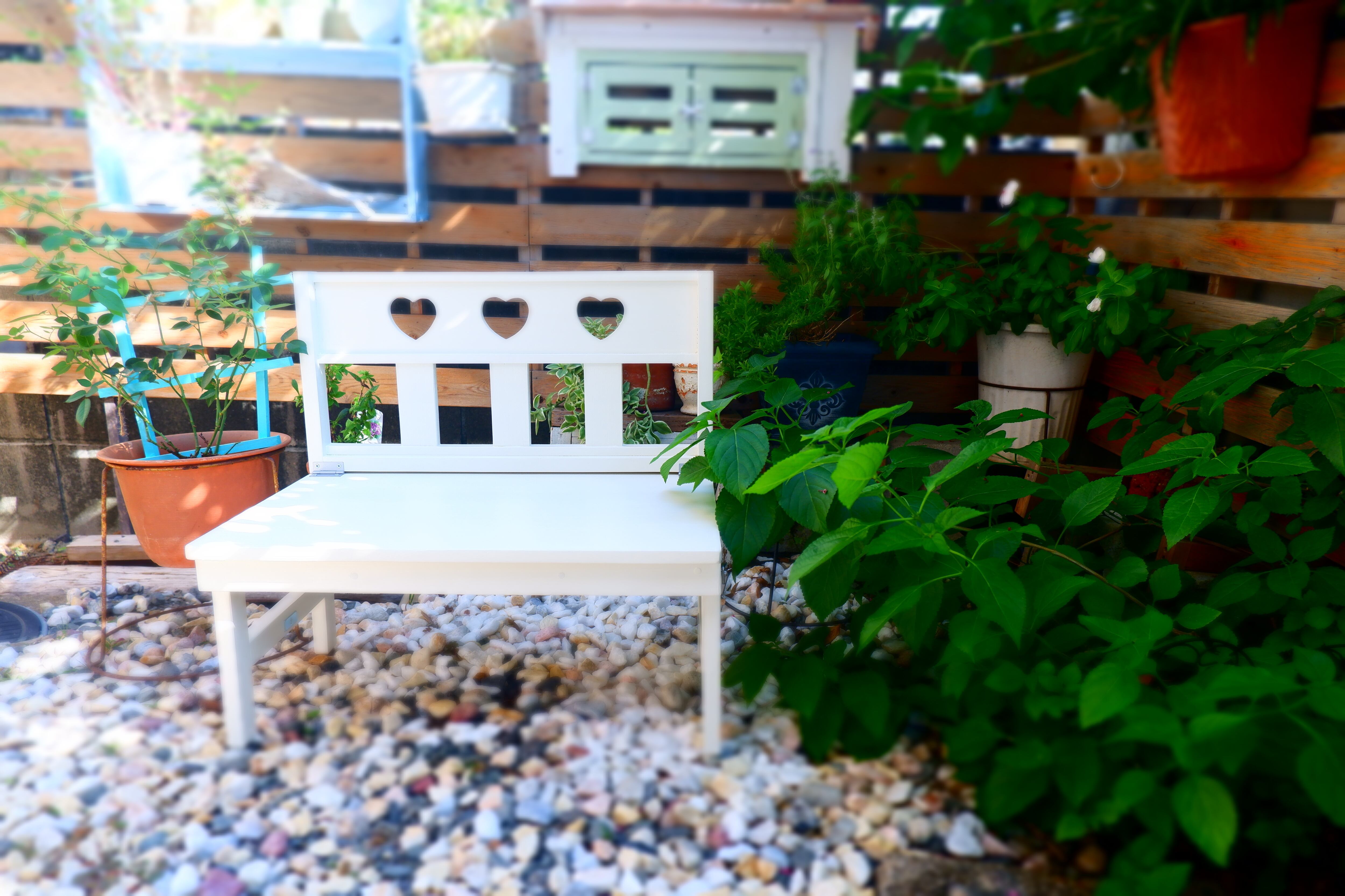 背板にハートを3個くりぬいた可愛くておしゃれなデザインで