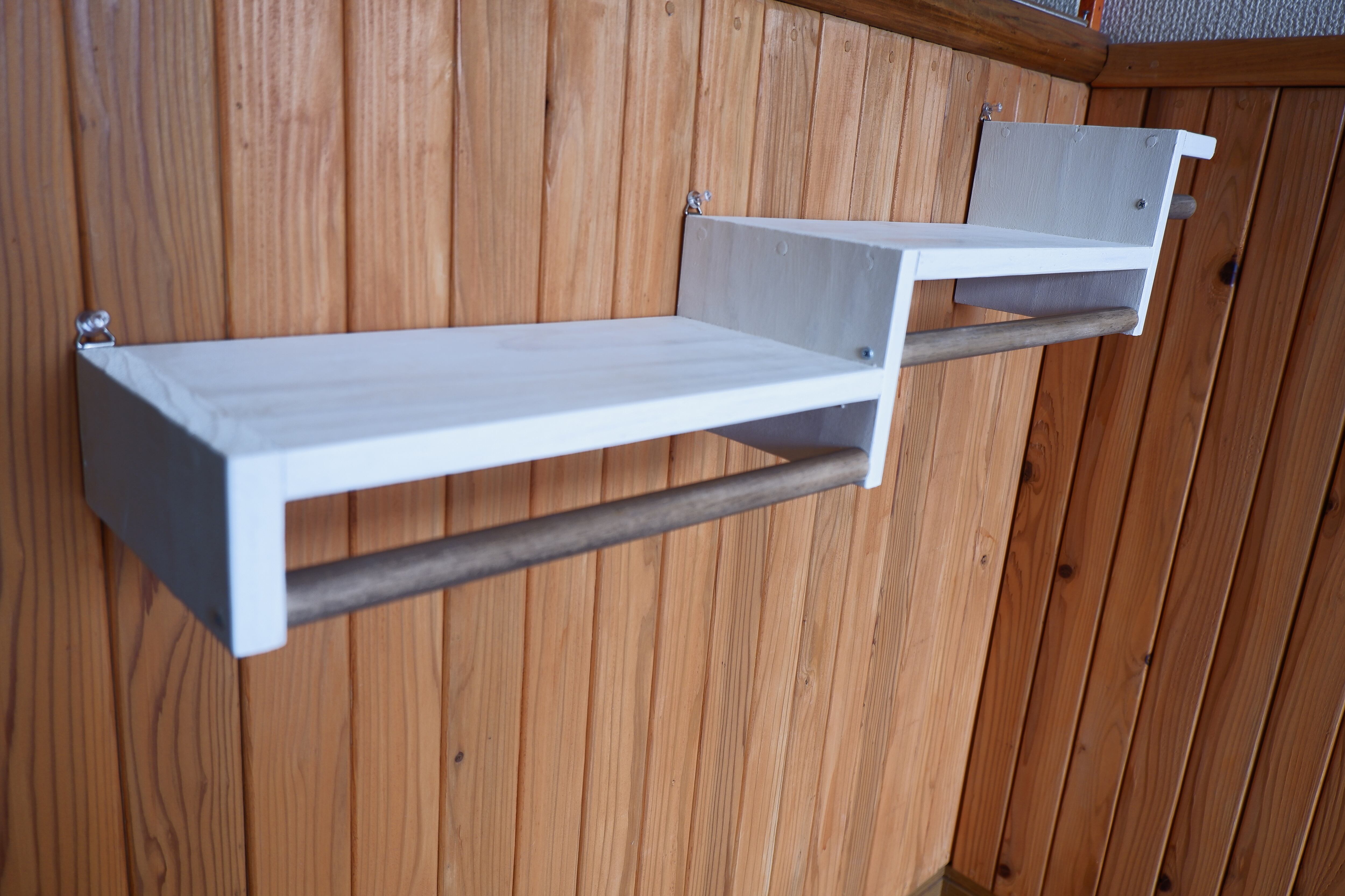 ②ハンガーラック本体 ミルキーホワイト ポール 水性ステンウォールナット
