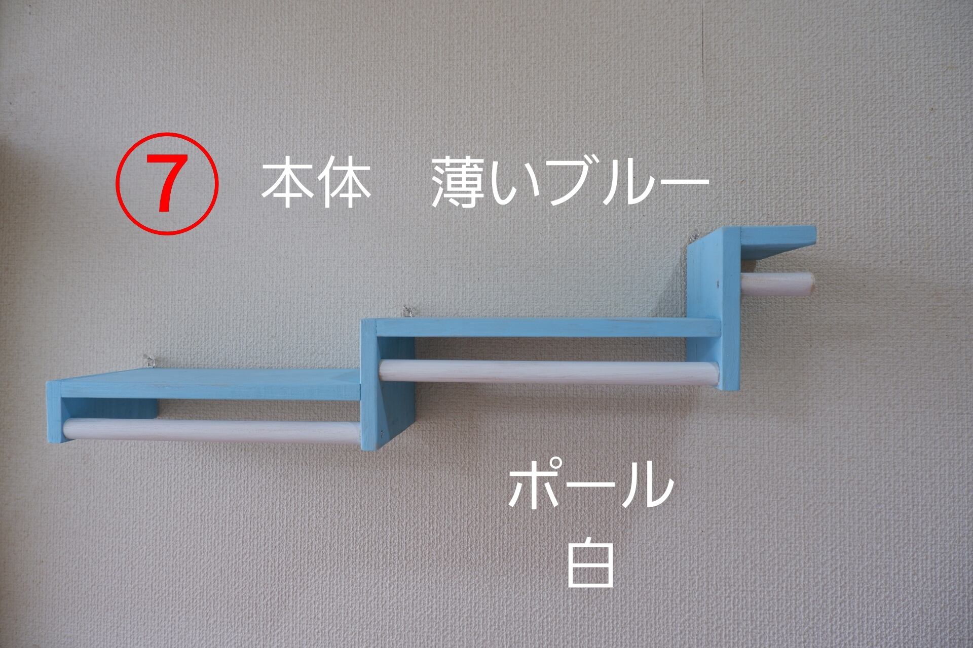 ⑦ハンガーラック本体 薄いブルー ポール 白