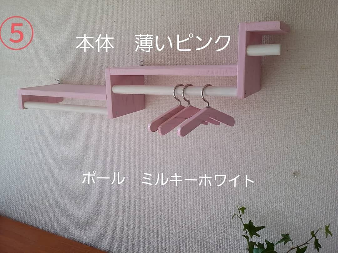 ⑤ハンガーラック本体 薄いピンク ポール ミルキーホワイト